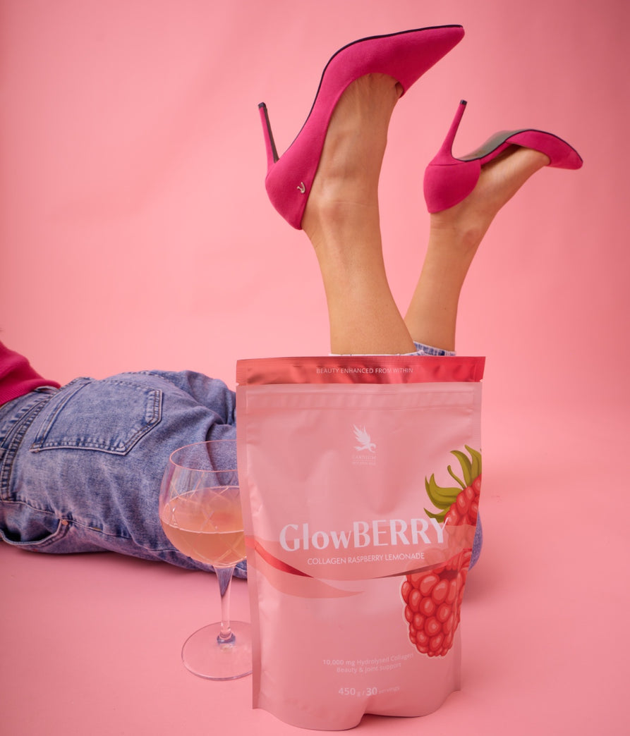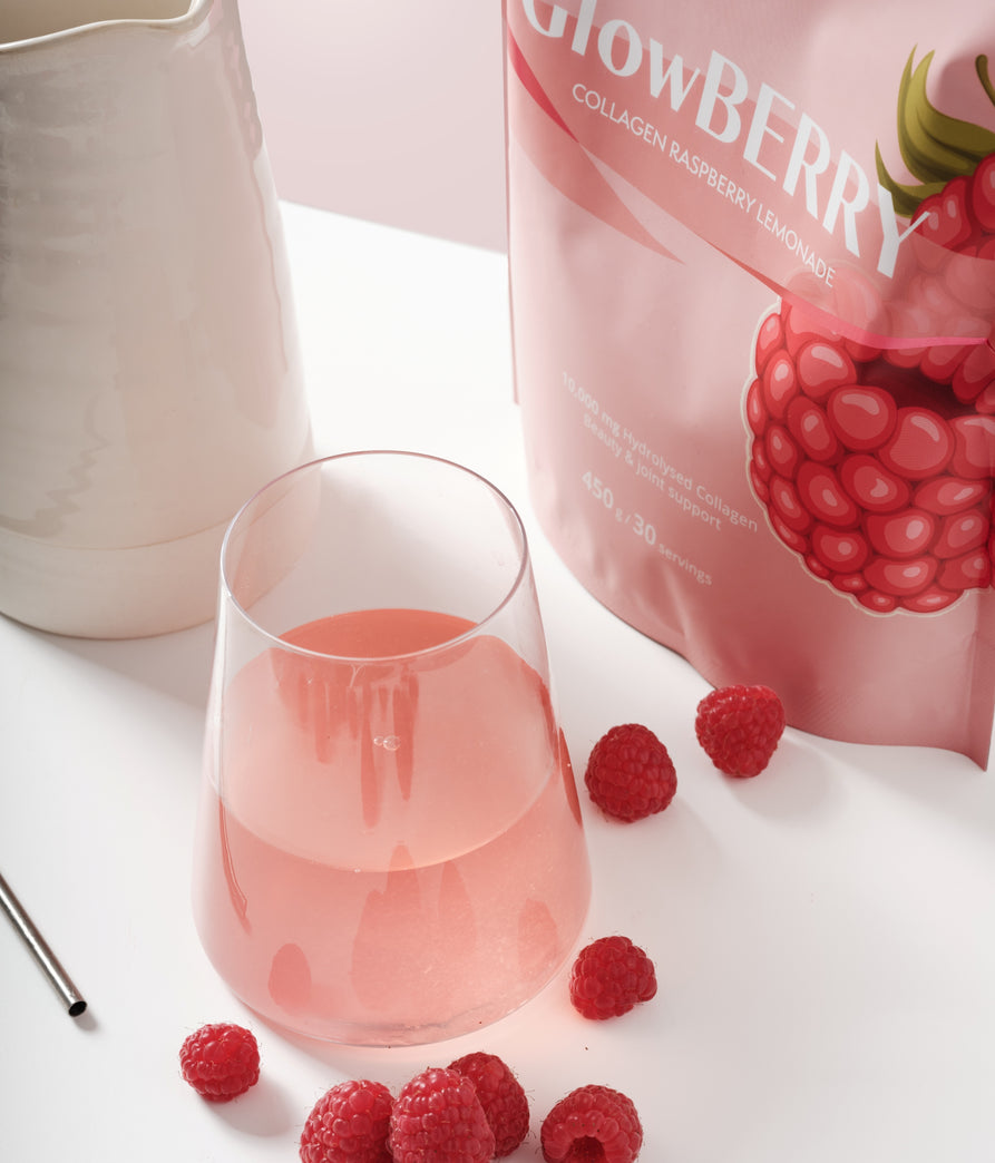 Glow Berry è una limonata al collagene dal gusto di lampone, che contiene 10.000 mg di collagene idrolizzato bovino, acido ialuronico, vitamina C e zinco. La vitamina C contribuisce alla normale formazione del collagene per la normale funzione della pelle, delle ossa e delle cartilagini, mentre lo zinco aiuta a mantenere pelle, capelli e unghie sani. Glow Berry non è solo una bevanda — è un rituale quotidiano di self-care in forma liquida, pensato per i momenti in cui desideri prenderti cura di te stessa, della tua pelle e del tuo benessere, dall’interno verso l’esterno.