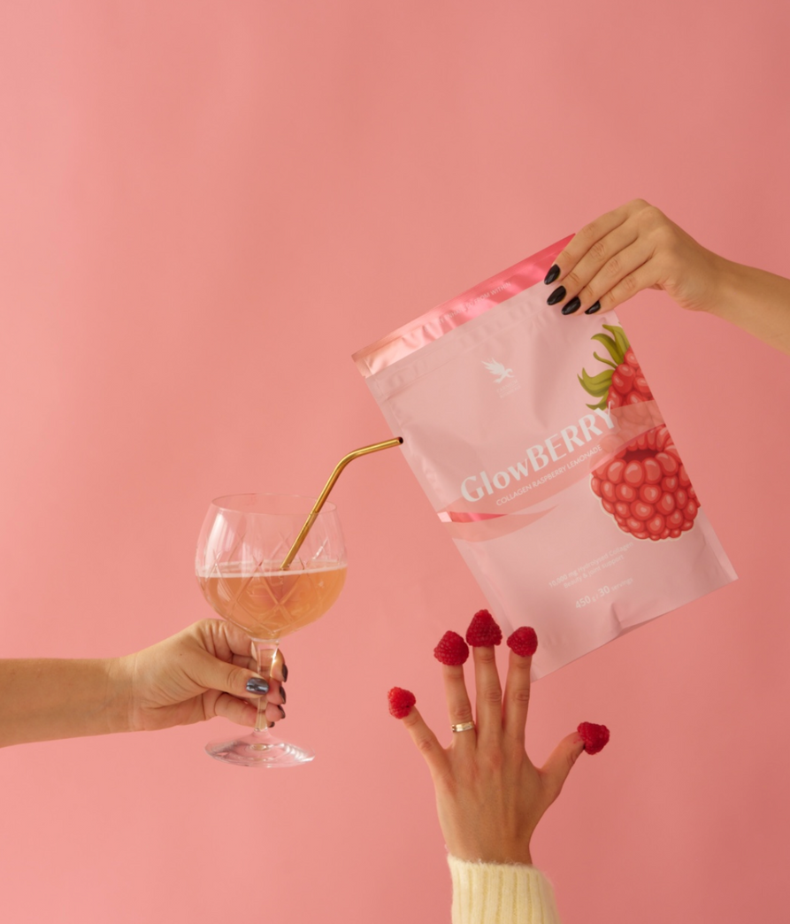 Glow Berry è una limonata al collagene dal gusto di lampone, pensata per una routine quotidiana di bellezza e benessere. Ogni porzione unisce un’elevata quantità di collagene idrolizzato, acido ialuronico e una combinazione accuratamente selezionata di micronutrienti: vitamina C e zinco, che con i loro effetti riconosciuti sostengono la pelle, il sistema immunitario e la protezione delle cellule. La formula è arricchita con bacche di açaí e rosa canina.