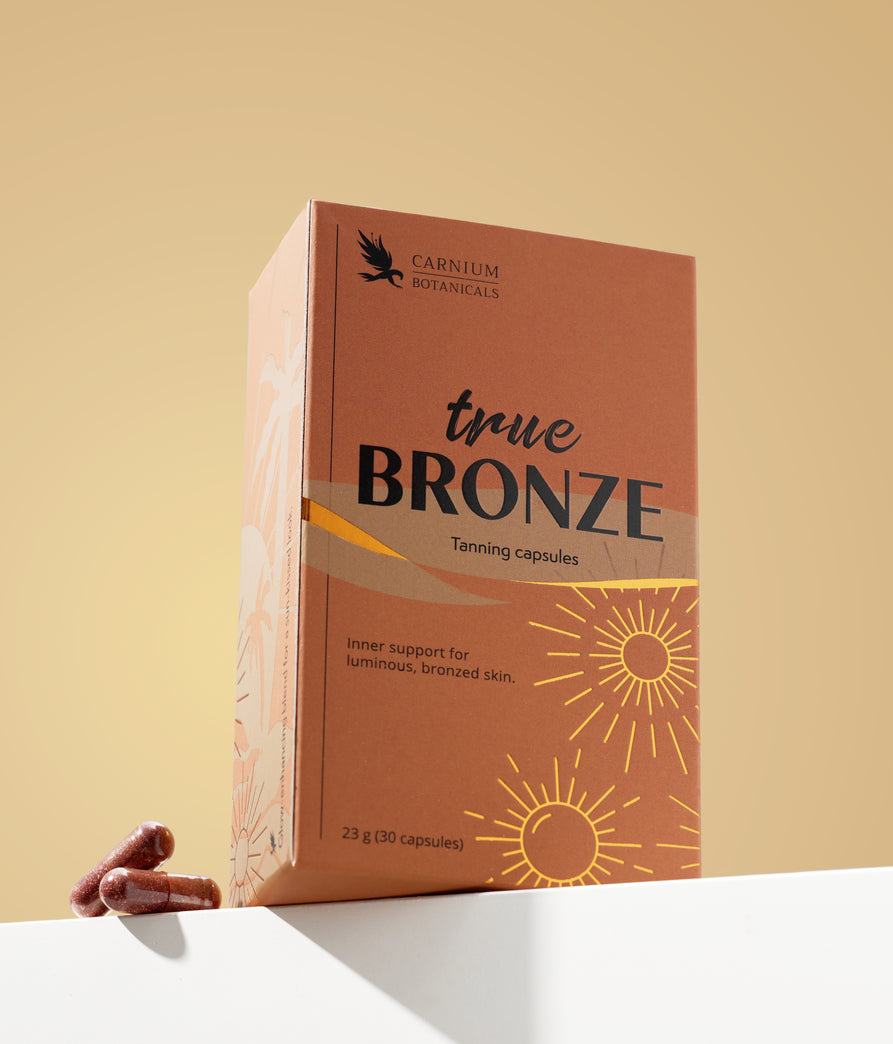 True BRONZE racchiude una selezione accurata di carotenoidi naturali – beta-carotene, licopene e astaxantina. Il beta-carotene è una fonte di vitamina A, che contribuisce al mantenimento di una pelle normale. In altre parole, TrueBRONZE lavora dall’interno, là dove la pelle ha più bisogno di essere nutrita e protetta. Non importa se ti stai preparando all’estate, se hai appena concluso le vacanze o desideri una pelle radiosa anche nei mesi più freddi – TrueBRONZE è la tua routine quotidiana di bellezza naturale.